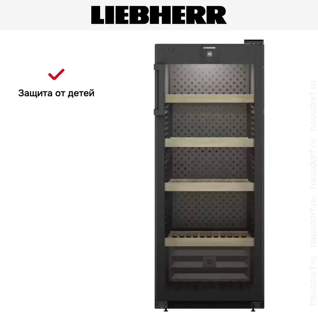 Винный холодильник Liebherr WPbl 4601 имеет одну температурную зону, в которой можно разместить бутылки и единовременно выставить только одну комбинацию настроек. Он устанавливается отдельно, что удобно, если у вас есть специальное помещение — кладовая, погреб и т.д. Количество бутылок, которое можно разместить с учетом полной комплектации и из расчета объема бутылки 0,75 л, — 166 шт.