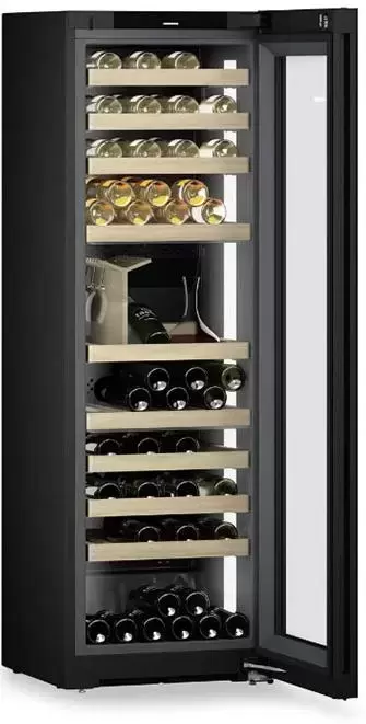 Винный холодильник Liebherr WPgbi 5283 имеет несколько температурных зон, в которых одновременно можно хранить разные сорта алкоголя и выставлять разные сочетания настроек. Он устанавливается отдельно, что удобно, если у вас есть специальное помещение — кладовая, погреб и т.д. Количество бутылок, которое можно разместить с учетом полной комплектации и из расчета объема бутылки 0,75 л, — 85 шт.