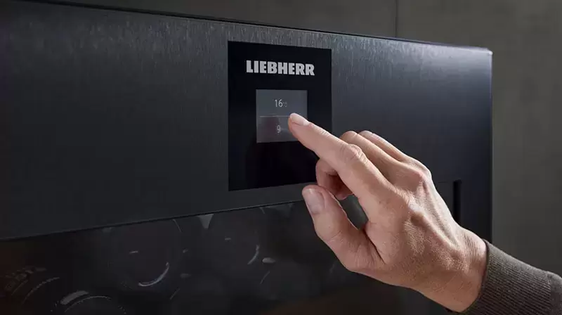 Электронное управление помогает быстро разобраться в том, как функционирует эта модель, и легко настроить все необходимые параметры. На дисплее отображаются данные, которые собирают датчики в камере. Лампочки, расположенные внутри, хорошо подсвечивают бутылки. Всего полок, на которых можно разместить коллекцию, в шкафу 8 шт.