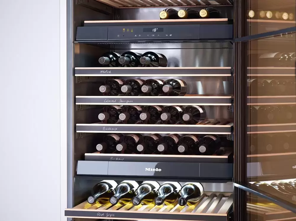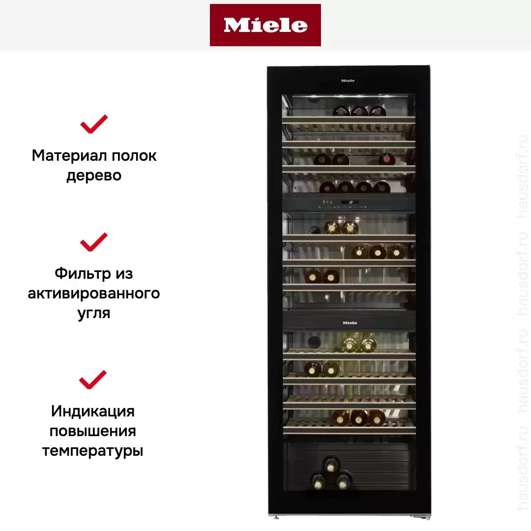 Винный шкаф Miele KWT 6833 SG — это идеальное решение для хранения и подачи вина в домашних условиях. Это мультитемпературное устройство, предназначенное для отдельного размещения. Со своими габаритами 192×70×74.6 см, он обладает внушительной вместимостью — до 178 бутылок объемом 0.75 л. Общий объем составляет 503 литра, что позволяет разместить в нем большую коллекцию вин.