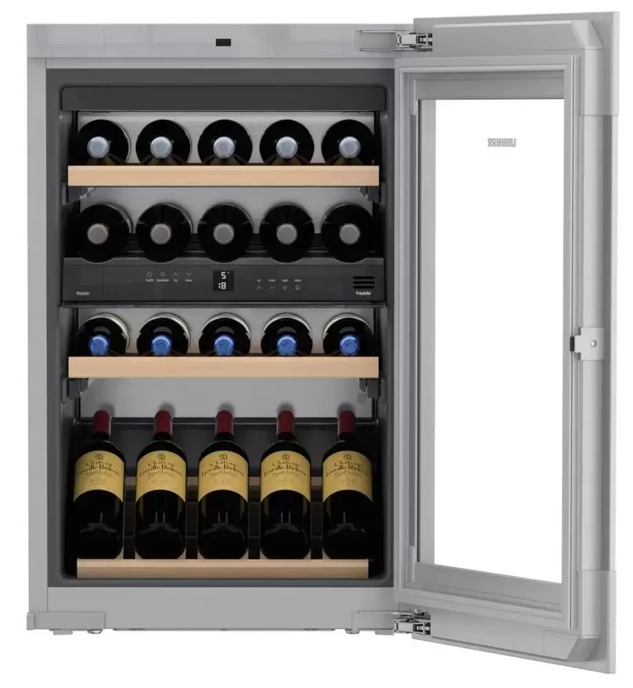 Модель отличается низким энергопотреблением класса A — годовой расход энергии составляет всего 145 кВтч/год, что делает устройство экономичным вариантом. Два независимых контура охлаждения позволяют регулировать температуру в каждой из зон с высокой точностью, что расширяет возможности для хранения. Панель управления может быть заблокирована от детей, что повышает уровень безопасности. Для обзора содержимого применяется продолжительно включаемая светодиодная подсветка с функцией плавного изменения яркости. Вино размещается на четырех полках из дерева, две полки можно без труда выкатить на телескопических шинах. Демонстрационная полка служит для размещения начатых бутылок или для презентации коллекционных вин. От посторонних запахов вина защищает фильтр из активированного угля с возможностью замены, а от ультрафиолета — стеклопакет в дверце. Для бережного хранения служит открываемая одним нажатием дверца TipOpen с доводчиком SoftSystem. В комплектации представлена подробная инструкция по эксплуатации, с которой необходимо ознакомиться перед установкой и подключением. Тихая работа не создает дискомфорт — уровень шума не превышает 36 дБ. Индикация неисправностей позволяет контролировать устройство. Среди преимуществ винного шкафа Либхер EWTgw 1683 Vinidor: функция защиты от детей, перенавешиваемые дверные петли, сенсорное управление.