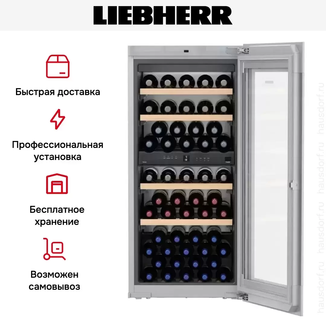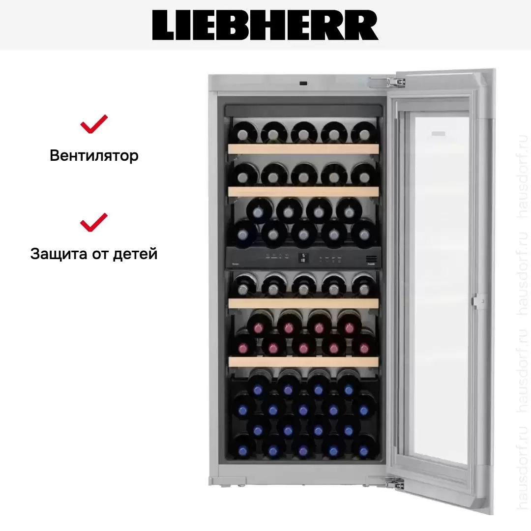 Фильтр из активированного угля FreshAir задерживает посторонние запахи, способные неблагоприятно отразиться на качестве вин. На панели управления, расположенной за дверцей в средней части, находятся индикаторы температуры винного отделения, индикатор неисправности, кнопка блокировки от детей. Все это позволяет наиболее точно контролировать работу устройства. Дверца при встраивании прибора можно быть перенавешена на левую сторону, если того требует конструкция помещения. Дверной доводчик SoftSystem гарантирует мягкое закрытие, открыть дверцу можно легким нажатием. Яркость LED-освещения можно изменить: плавное изменение яркости и продолжительное включение не сказывается на качестве вина. Компрессор винного холодильника отличается низким уровнем вибрации и шума, который составляет всего 36 дБ. При встраивании шкафа не требуется установка декоративного мебельного фасада. В комплект к изделию входит подробная инструкция по эксплуатации, с которой необходимо ознакомится перед установкой модели. Среди преимуществ винного шкафа Либхерр EWTgw 2383 Vinidor: перенавешиваемые дверные петли, фильтр из активированного угля, сенсорное управление.