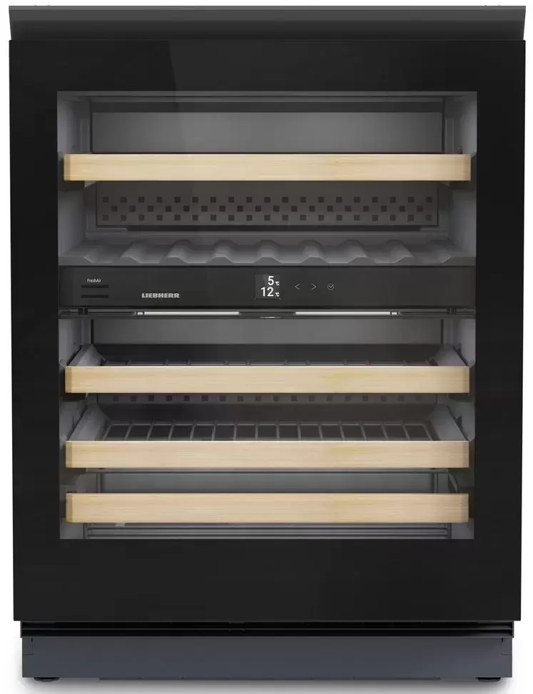 Винный холодильник Liebherr UWgb 3632 имеет две температурные зоны, в которых одновременно можно хранить разные сорта алкоголя и выставлять разные сочетания настроек. Он встраивается в нишу, что удобно, если у вас ограничен метраж помещения. Благодаря компактным размерам данная модель — отличный выбор для офиса, гостиничного номера. Количество бутылок, которое можно разместить с учетом полной комплектации и из расчета объема бутылки 0,75 л, — 32 шт.