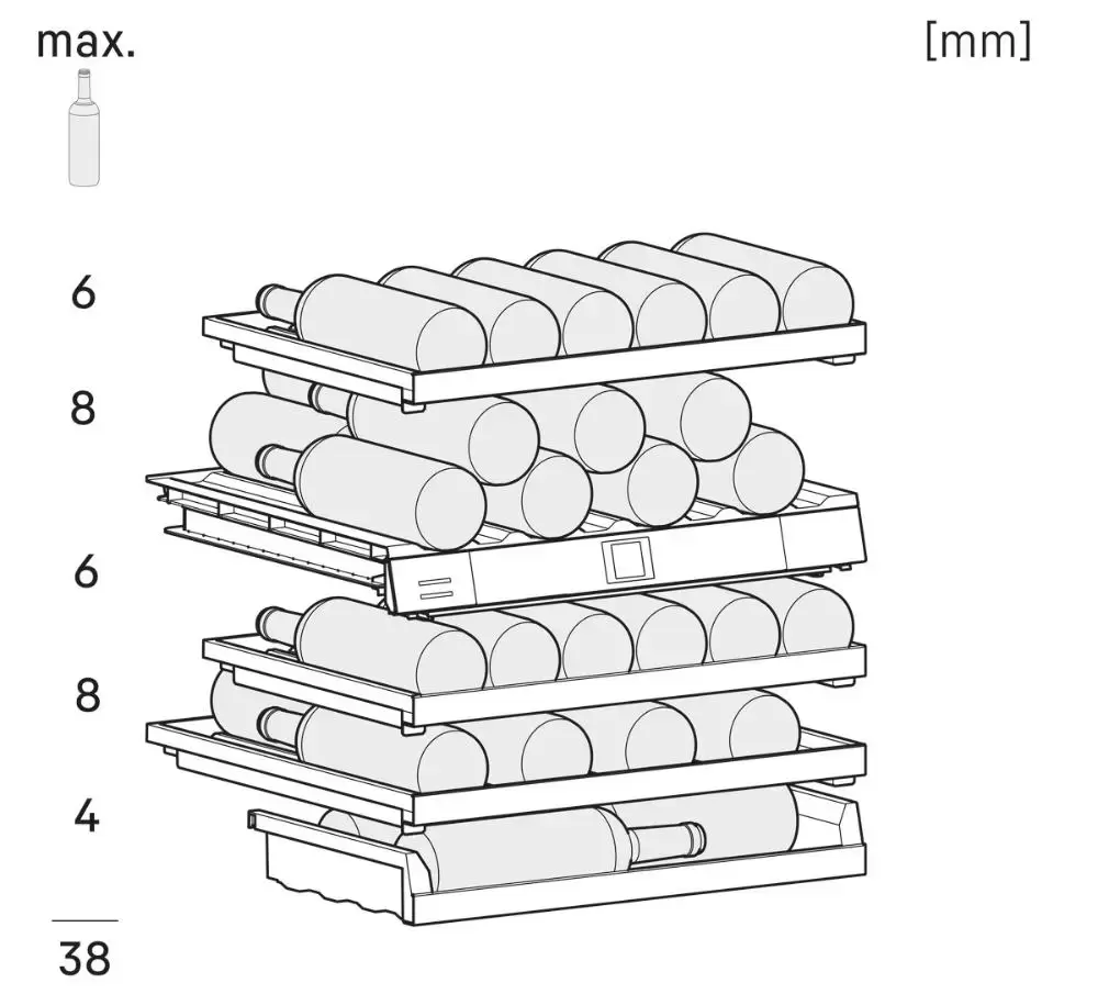 Винный холодильник Liebherr UWpri 3762 имеет две температурные зоны, в которых одновременно можно хранить разные сорта алкоголя и выставлять разные сочетания настроек. Он встраивается в нишу, что удобно, если у вас ограничен метраж помещения. Благодаря компактным размерам данная модель — отличный выбор для офиса, гостиничного номера. Количество бутылок, которое можно разместить с учетом полной комплектации и из расчета объема бутылки 0,75 л, — 38 шт.
