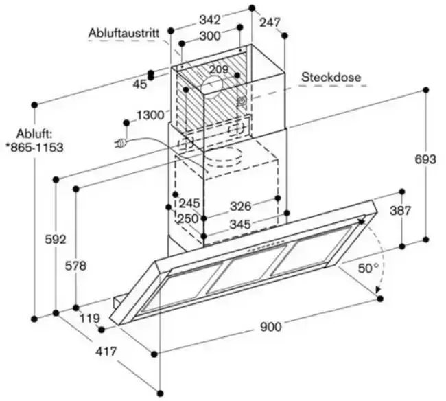 Данная вытяжка крепится на стену и имеет наклонную фронтальную панель, что придает изюминку дизайну и позволяет сохранить свободное рабочее пространство внизу. Обратите внимание на цветовые сочетания модели Gaggenau AW 250-191, чтобы органично вписать ее в свою квартиру. Оттенок корпуса: нержавеющая сталь. Благодаря лампочкам, которые расположены на нем, можно освещать плиту и столешницу рядом, чтобы готовить было еще проще и приятнее.