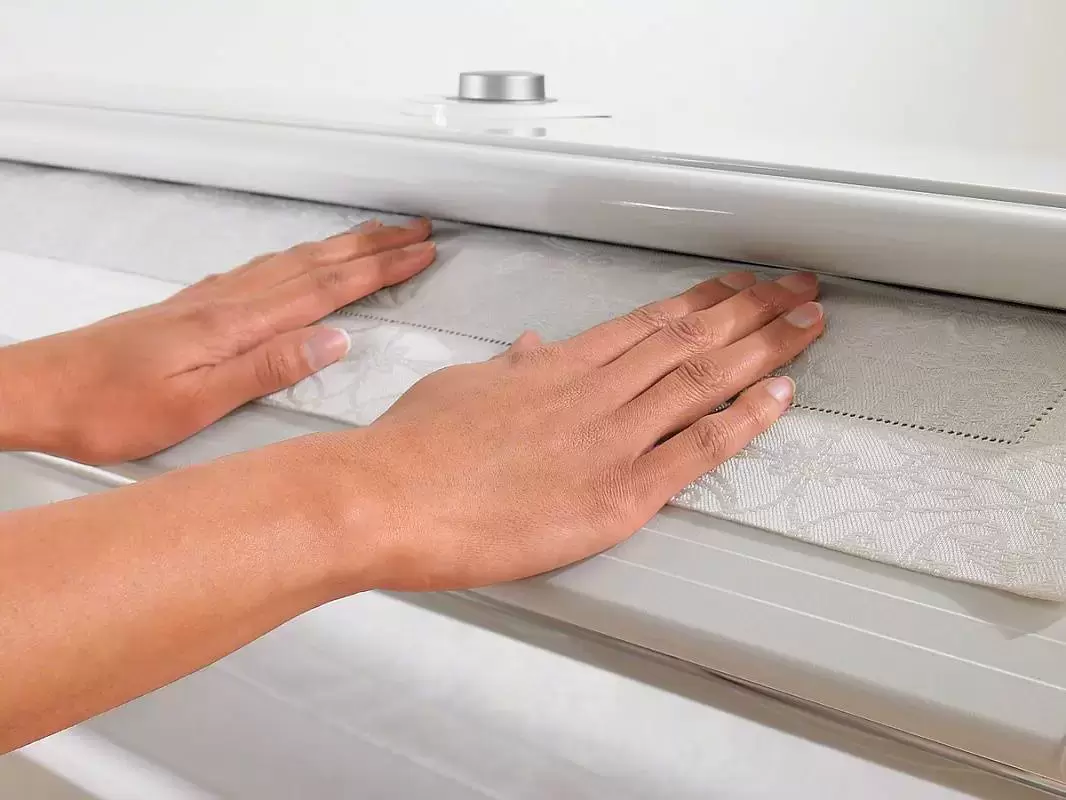 Полупрофессиональная модель с автоматической системой защиты пальцев создает все условия для эффективного глажения больших объемов белья — постельного, столового, детских вещей, спортивной и повседневной одежды. Гладильный вал шириной 83 см со свободным краем рассчитан на работу с изделиями большого размера. Запуск производится при помощи ножной педали, которую можно переместить по выбору пользователя. Это не только освобождает обе руки, но и позволяет сидеть при выполнении работы. Лучшее разглаживание складок и заломов достигается за счет планки, которая под давлением прижимает белье к валу, и специального стола для разглаженных вещей. Установка температуры глажения производится при помощи поворотного регулятора, рационально расположенного с правой стороны. Три нагревательных элемента позволяют равномерно нагревать поверхность вала. Функция пара применяется при разглаживании тонких тканей. В двух резервуарах помещается достаточное количество воды, которой хватает примерно на 40 минут глажения. О необходимости наполнить резервуары сообщит светодиодный сигнал. В сложенном виде устройство занимает не более 0,2 м2 и может поместиться в шкафу.